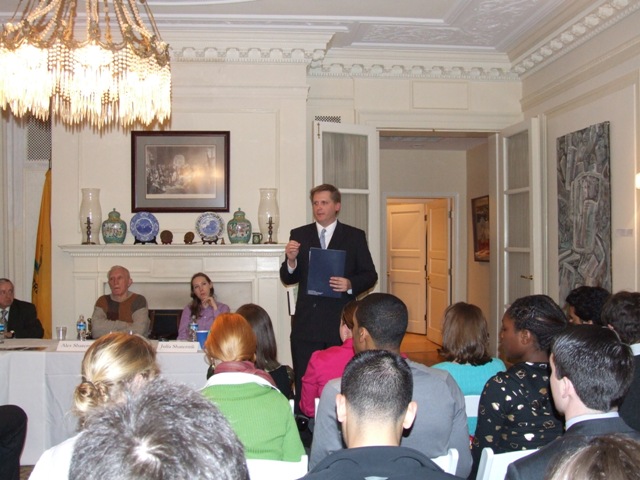 Matthew Kwasiborski, the Prague Programs Director for the Fund for American Studies opened the reception and reviewed the political situation in Belarus, difficulties Belarusian artists-democrats facing back home. He also introduced the programs and events launched by the Fund for American Studies.