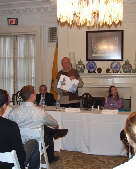 Subsequently took the floor the Belarusians, representatives of the Belarusian Museum of New York: famous art critic Alexander Glezer, artist Ales Shaternik. Ales pointed out the significance of Art in fight for Democracy and defined the most prominent paintings on display such as “Cain and Abel”, “The Wall” and others. He also reminded about our famous fellow-countryman Tadeusz Kosciuszko, the national hero of America, whose monument was erected in this country in Washington D.C.