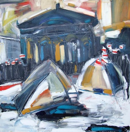 The exhibition coordinator and the leader of The Congress of the new generation of Belarusian Diaspora in Europe and the United States Pavel Marozau: “The Exhibition “Art against Dictatorship” started in the summer of 2008 and represents alternative Belarus, a country of free-thinking, creative people. It addresses the problems of the freedom of creativity and self-expression, human rights in Belarus. You cannot change Belarus and bring it closer to Europe through politics, but you can do it through culture. We have powerful cultural movement of artists, musicians who see our country free and European“.