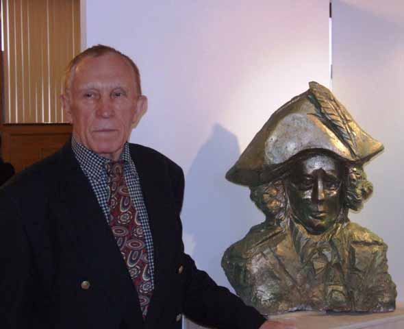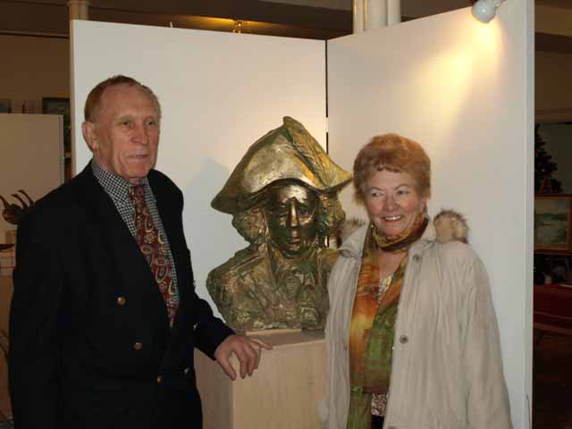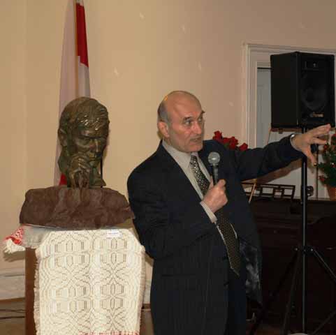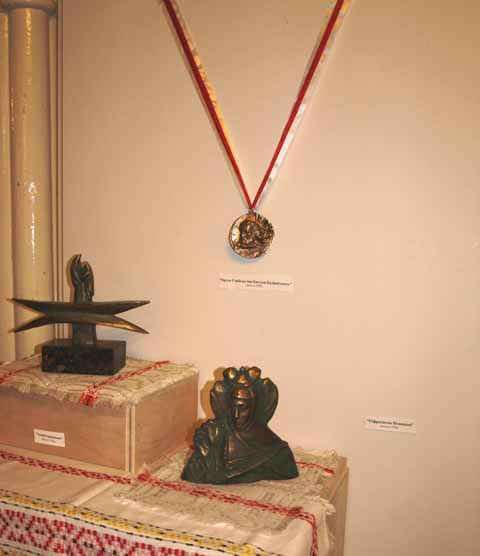 Zianon Pazniak expressed his deep gratitude to Ales Shaternik for bringing a little part of Belarus to St. Cyril of Turau Cathedral. Mr. Pazniak also turned his attention to Shaternik’s sculpture works. The exhibition contains one of the new sculptures “Tadeusz Kosciuszko” (coral stone, toning 2009). The sculptural image of Belarusian hero Tadeusz Kosciuszko was created by Ales Shaternik in Key West, Florida as an original impromptu in sculpture as well as new plastic material.