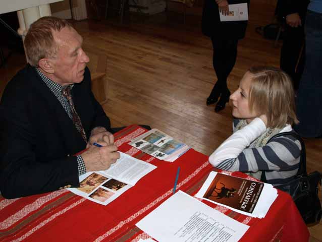 Ales Shaternik spoke about his creative work; he proudly introduced his album-book “The Sun Cross” published right before his trip to America. Those present at the grand opening had a unique opportunity to listen to the poem “The Sun Cross” read by Shaternik himself.