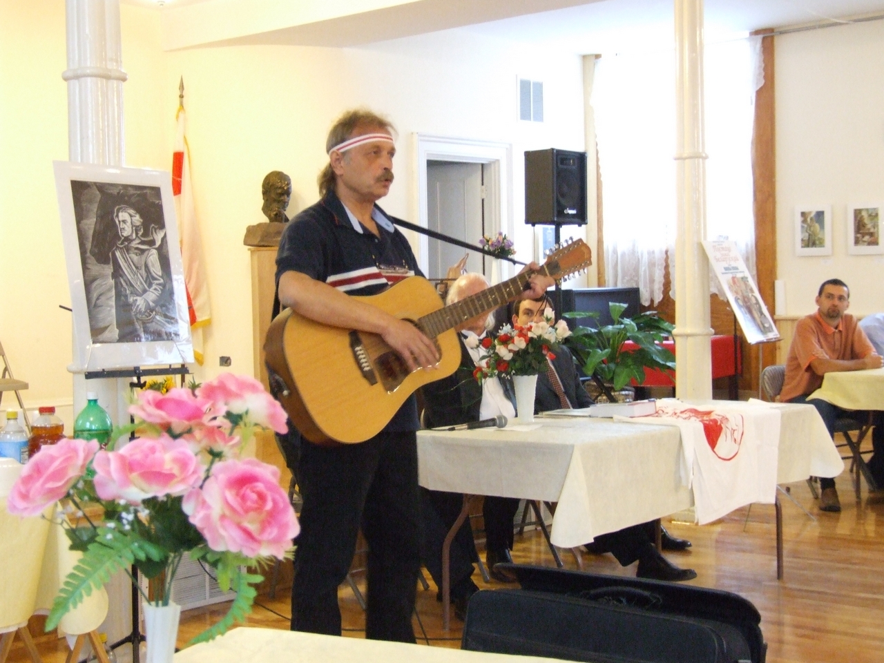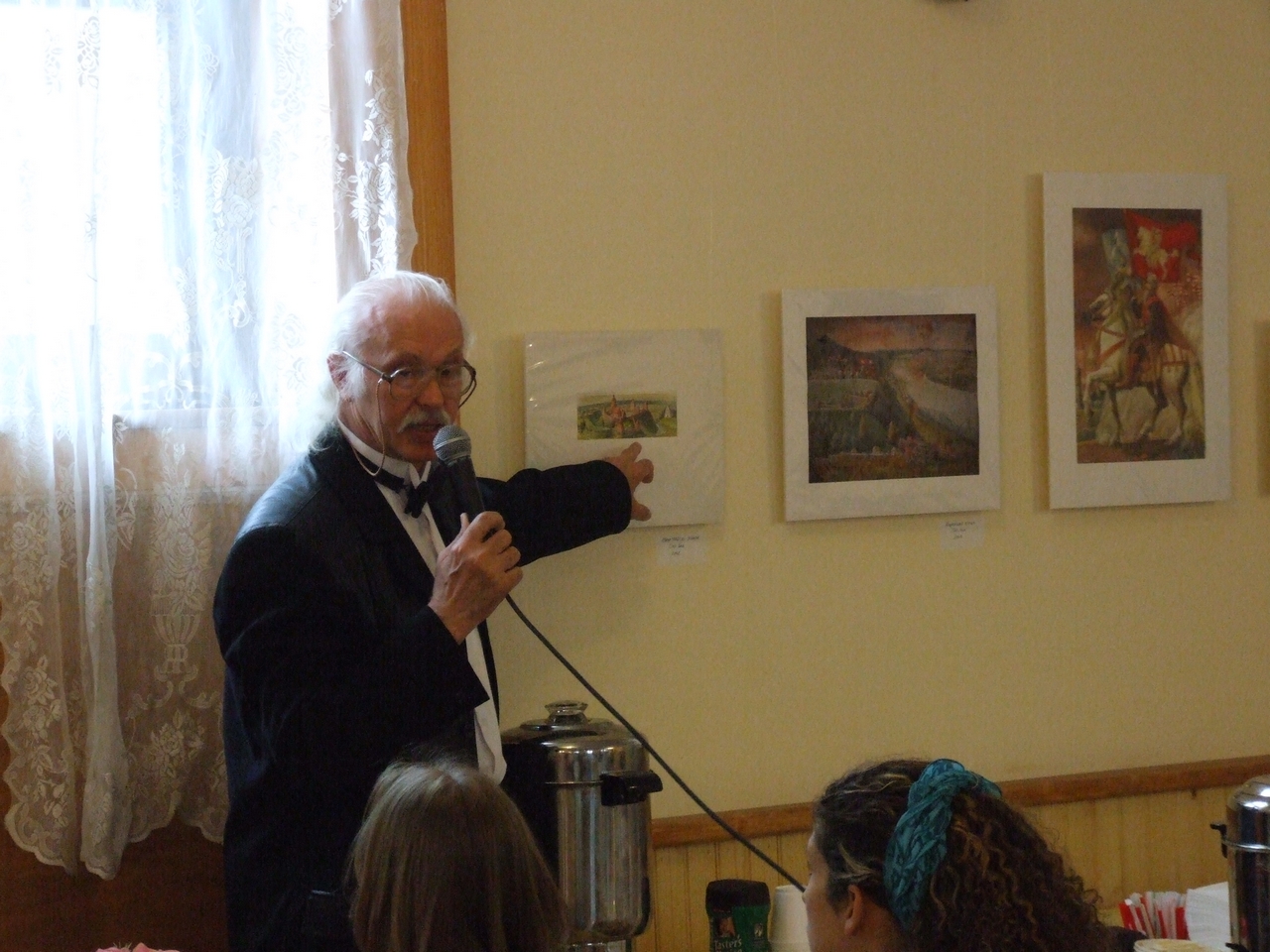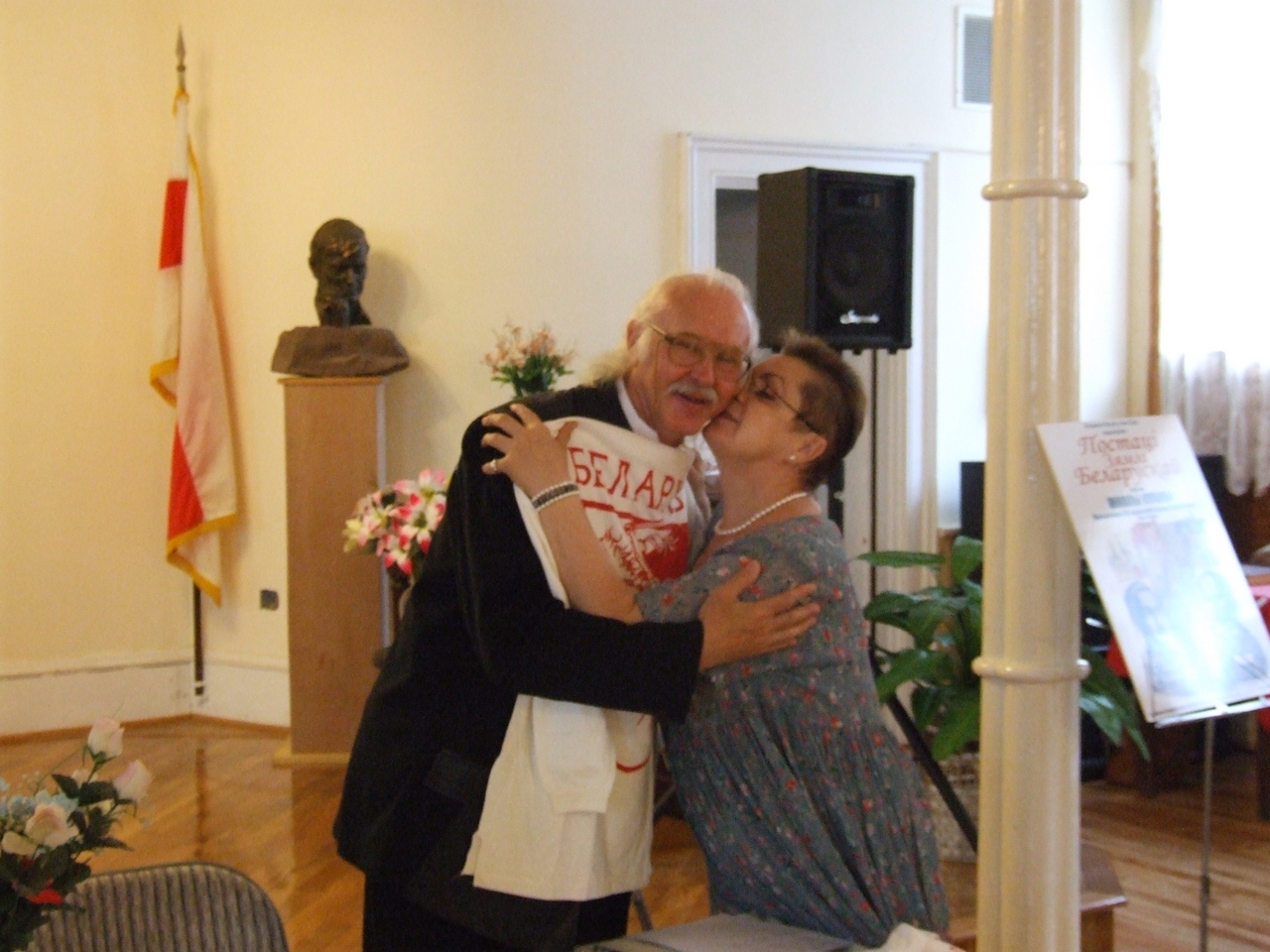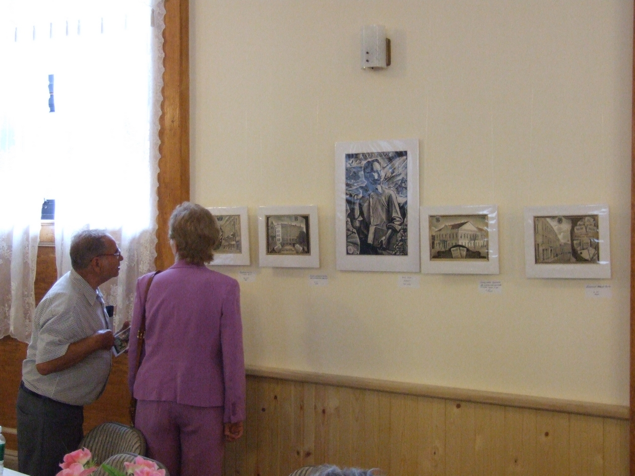 They spoke about history of art development both in Belarus and in Belarusan Diasporas abroad, greeted the artist upon the opening of his exhibition, and presented gifts to the artist. After the latter ceremonies, the artist took a lead in presenting his artwork. Mikalay Saganovich officially presented the gift to the artist on behalf of the Belarusan immigrants. The official opening procedure was completed by Siarzhyk Sokalay-Vojush, who in his turn also greeted the artist and sang the song of Belarusan rebirth.