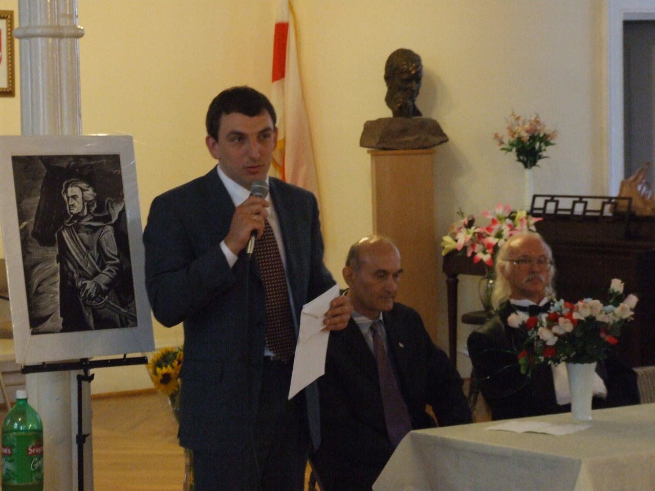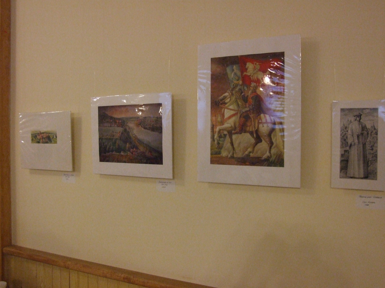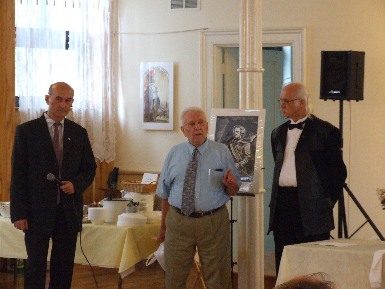 They spoke about history of art development both in Belarus and in Belarusan Diasporas abroad, greeted the artist upon the opening of his exhibition, and presented gifts to the artist. After the latter ceremonies, the artist took a lead in presenting his artwork. Mikalay Saganovich officially presented the gift to the artist on behalf of the Belarusan immigrants. The official opening procedure was completed by Siarzhyk Sokalay-Vojush, who in his turn also greeted the artist and sang the song of Belarusan rebirth.