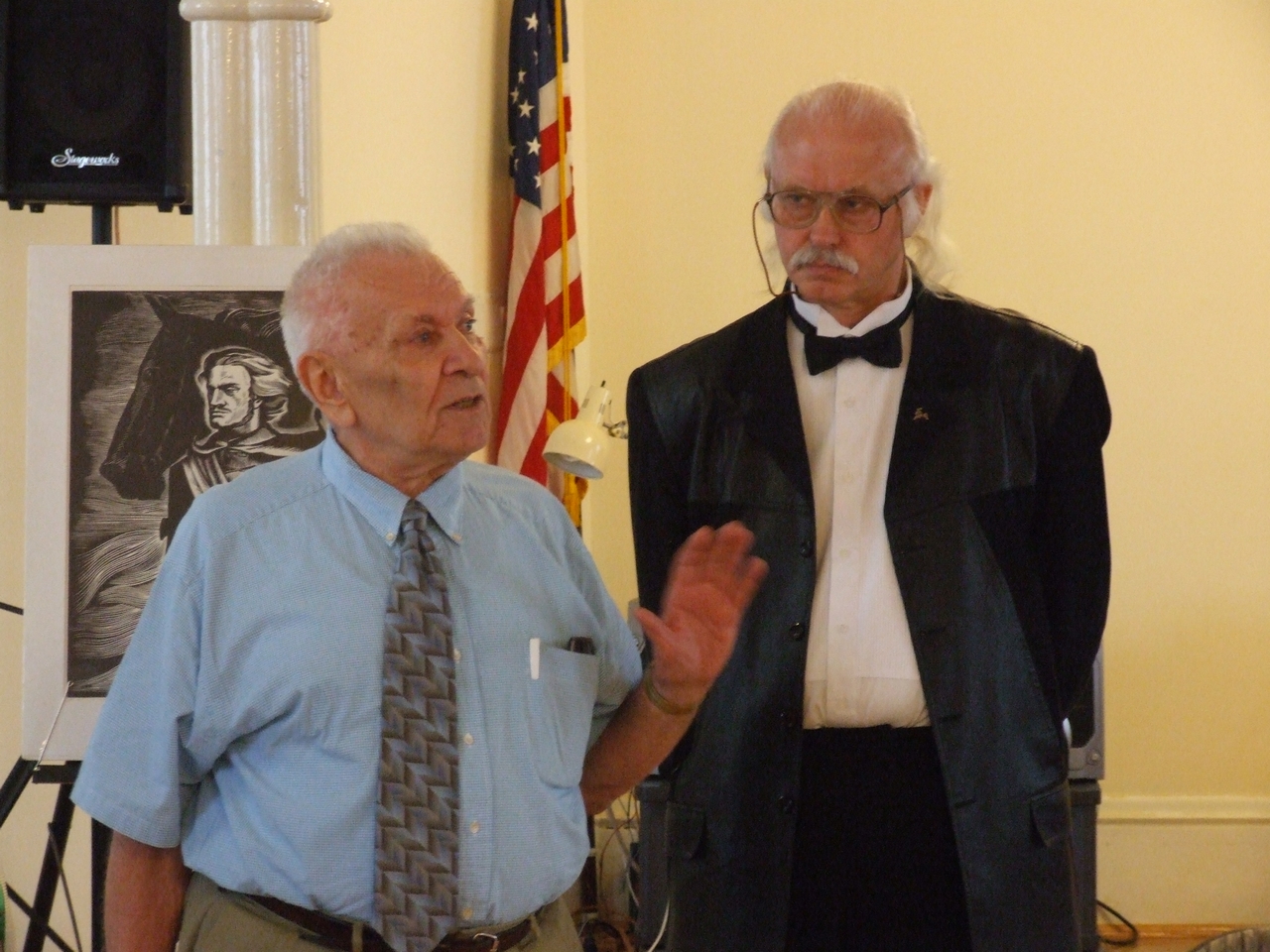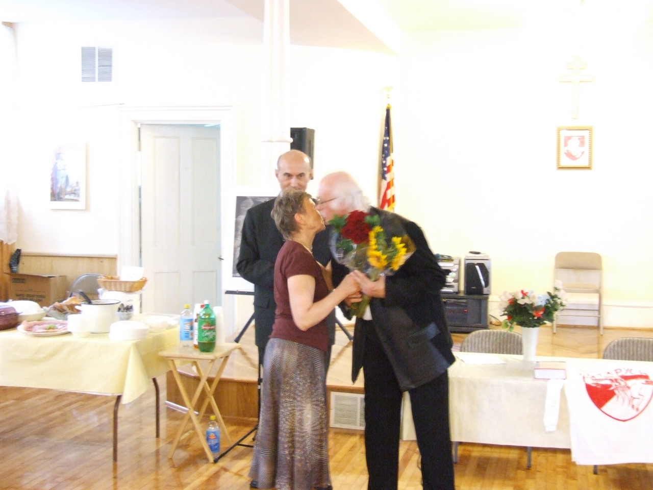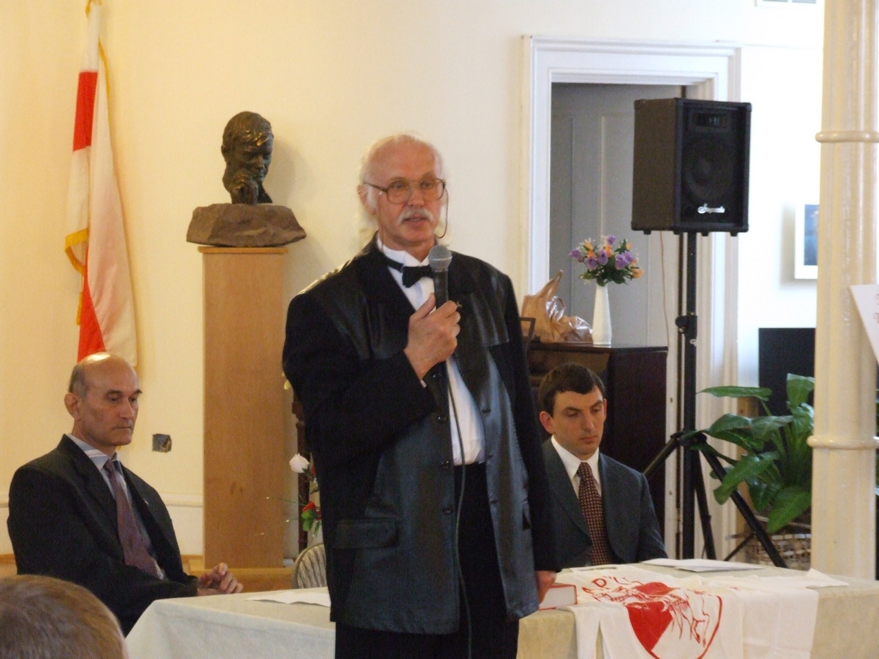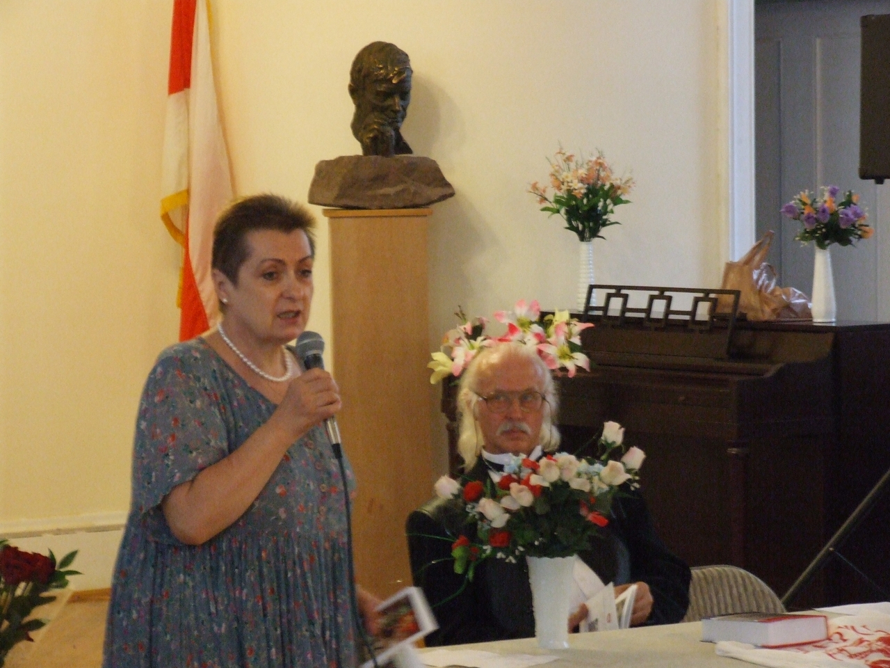 They spoke about history of art development both in Belarus and in Belarusan Diasporas abroad, greeted the artist upon the opening of his exhibition, and presented gifts to the artist. After the latter ceremonies, the artist took a lead in presenting his artwork. Mikalay Saganovich officially presented the gift to the artist on behalf of the Belarusan immigrants. The official opening procedure was completed by Siarzhyk Sokalay-Vojush, who in his turn also greeted the artist and sang the song of Belarusan rebirth.