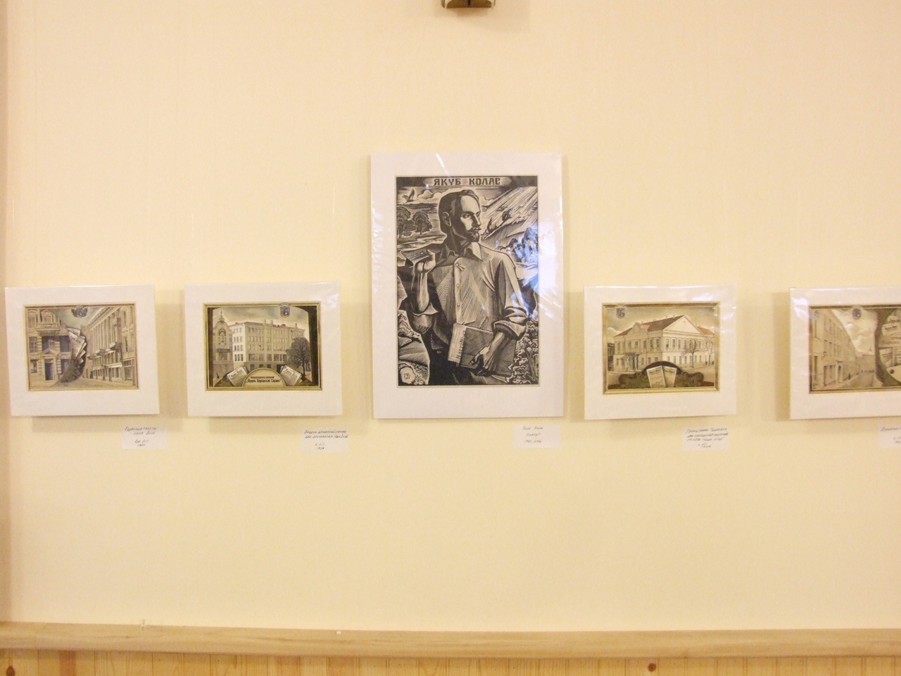 Even though the exhibition is dedicated to the anniversaries of the brightest authors of the Belarusan land Yanka Kupala and Yakub Kolas, Mikola Kupava also displays the images of Belarusan enlighteners Saint Efrasinnia (Euphrasinne) of Polatsk, Cyril of Turau, and Francysk Skaryna.